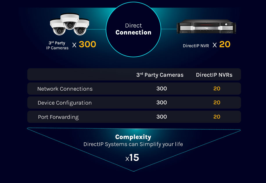 DirectIP® is an advanced video solution that seamlessly connects IP cameras, NVRs, and network devices to deliver rich functionality, while eliminating complex configuration