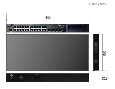 • Maximum per-device PoE delivery of 380W available for 1~24 RJ45 ports