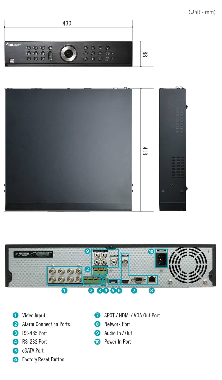 | Event Notification | Email (attach clip (.cbf)), Callback to Remote S/W, Push notification (IDIS Mobile), SNS (Twitter), NetFS(FTP) |