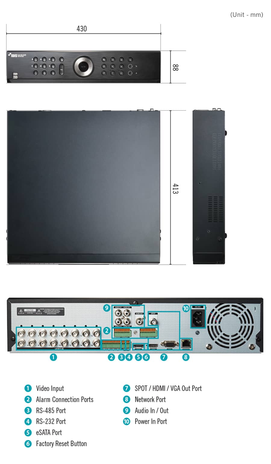 | UNIT Dimensions (W x H x D) - | 430mm x 88mm x 413 mm (16.9" x 3.5" x 16.3") |
