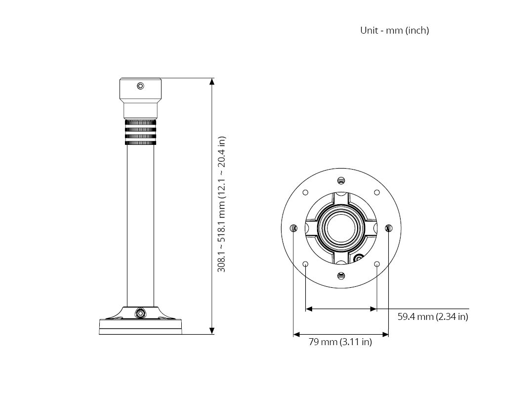 DimensionsØ99.5 x 308.1 ~ 518.1(L)