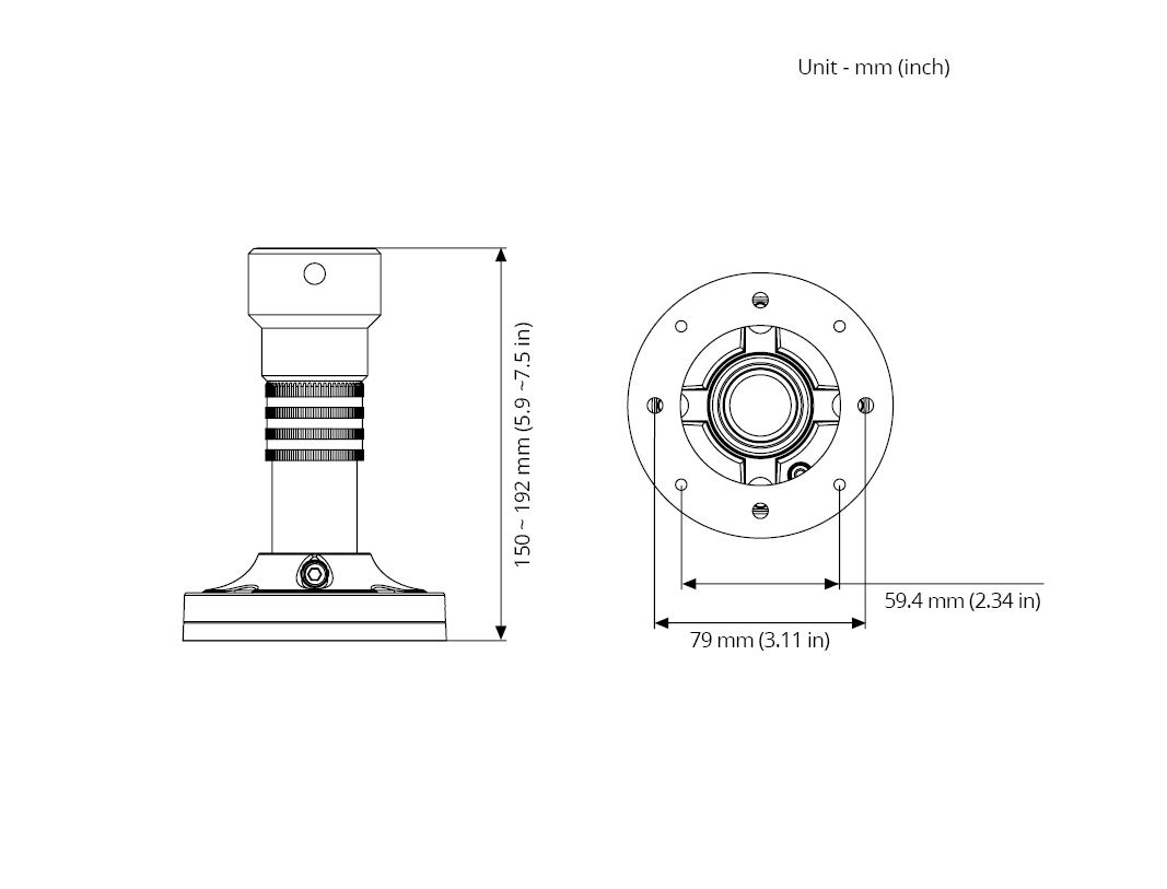 • Dimensions: Ø99.5 x 150 ~ 192(L) (Ø3.92