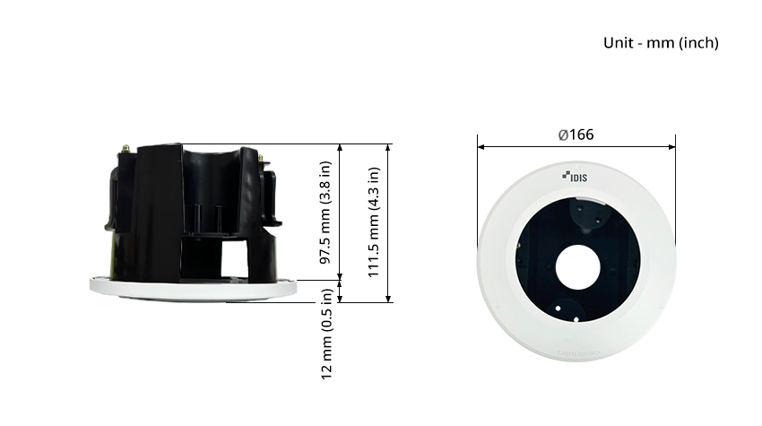 Dimensions[Max. Exposed Dimension]Ø166 x 111.5(H)(Ø6.54" x 4.39"(H))[Installation Dimension]Ø136~142 x 97(H)(Ø5.35~5.59 x 3.82"(H))